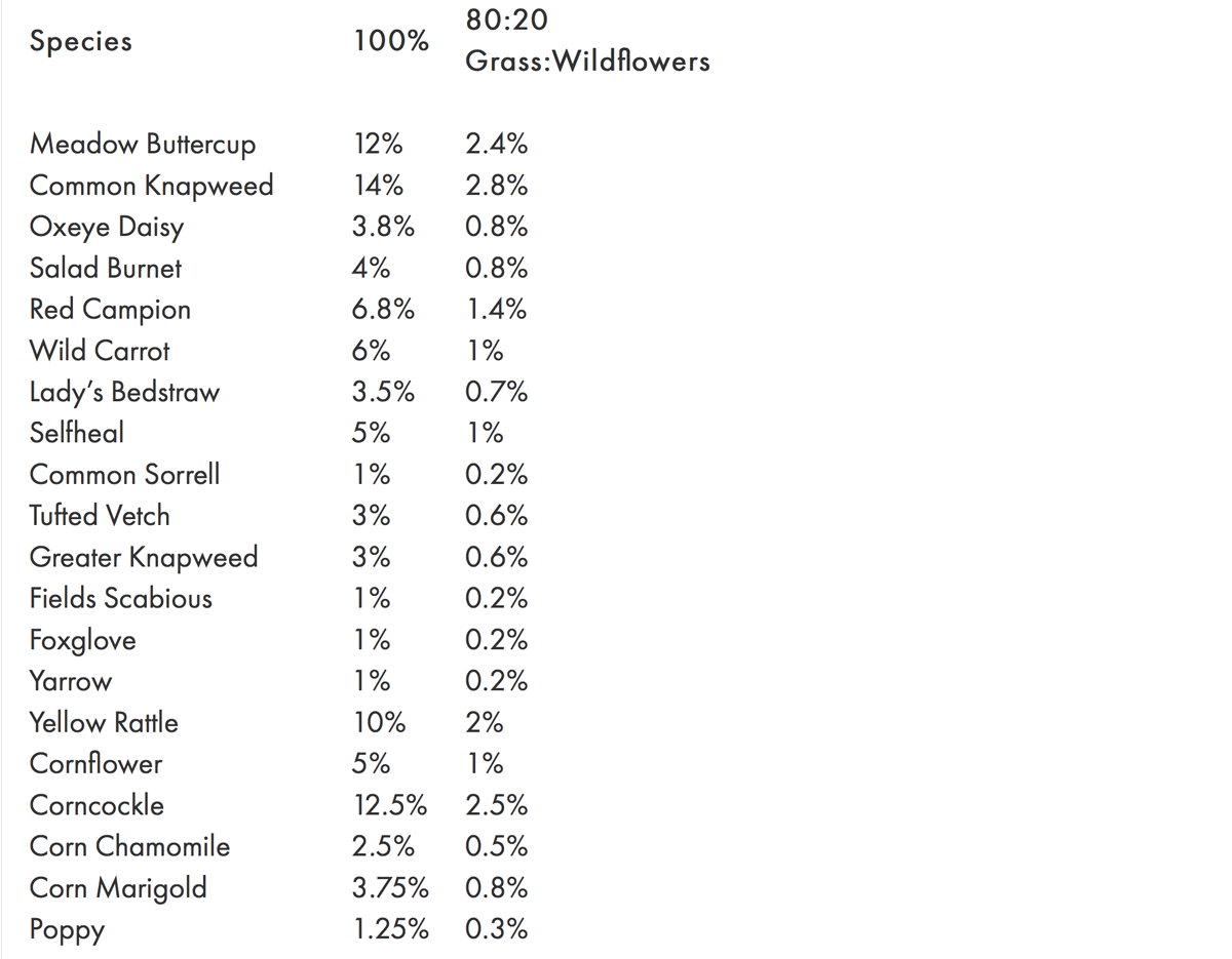When choosing 80:20 Grass:Wildflowers, the mixture contains a rich blend of grasses, formulated to compliment the wildflower species. The grass blend contains slow growing species which will not compete against the slower growing wildflowers. Some of the grasses included in the mixtures are quite rare, such as Meadow Foxtail and Sweet Vernal. Soil type specific mixtures also contain grass species that are indicative of that particular habitat, such Wavy Hairgrass in the acid soils mixture and Wood Meadow Grass in the woodland edge mixture.