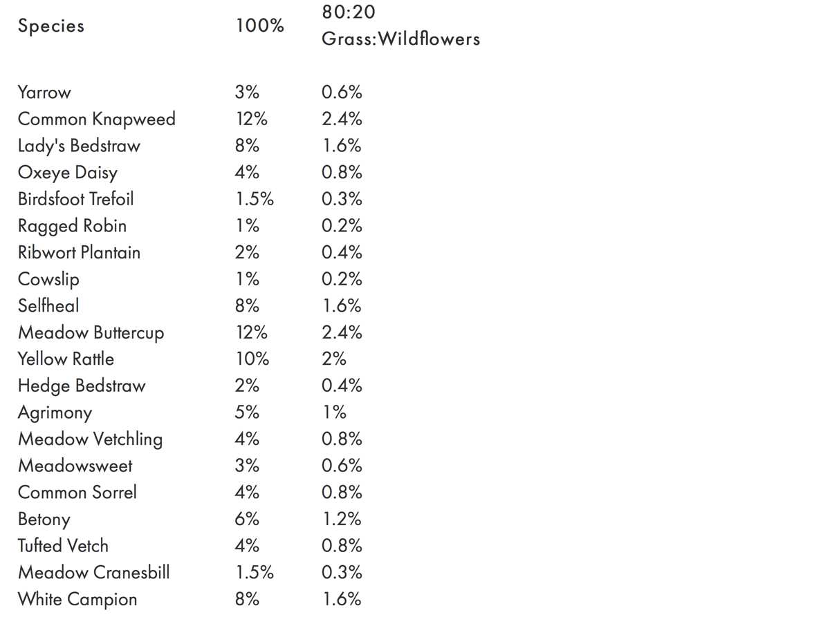 When choosing 80:20 Grass:Wildflowers, the mixture contains a rich blend of grasses, formulated to compliment the wildflower species. The grass blend contains slow growing species which will not compete against the slower growing wildflowers. Some of the grasses included in the mixtures are quite rare, such as Meadow Foxtail and Sweet Vernal. Soil type specific mixtures also contain grass species that are indicative of that particular habitat, such Wavy Hairgrass in the acid soils mixture and Wood Meadow Grass in the woodland edge mixture.