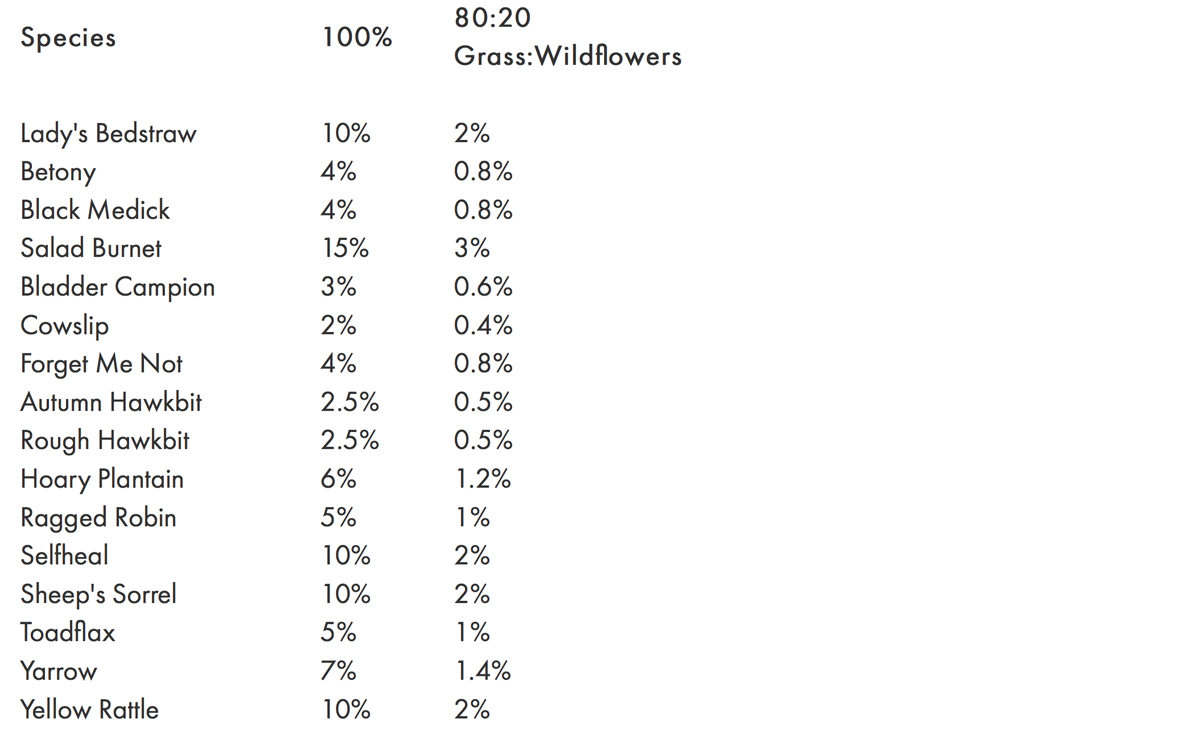 When choosing 80:20 Grass:Wildflowers, the mixture contains a rich blend of grasses, formulated to compliment the wildflower species. The grass blend contains slow growing species which will not compete against the slower growing wildflowers. Some of the grasses included in the mixtures are quite rare, such as Meadow Foxtail and Sweet Vernal. Soil type specific mixtures also contain grass species that are indicative of that particular habitat, such Wavy Hairgrass in the acid soils mixture and Wood Meadow Grass in the woodland edge mixture.