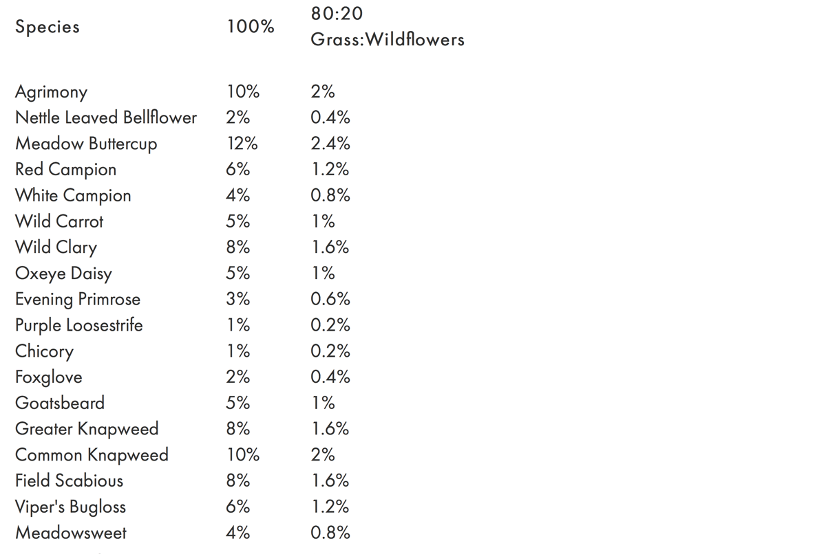 When choosing 80:20 Grass:Wildflowers, the mixture contains a rich blend of grasses, formulated to compliment the wildflower species. The grass blend contains slow growing species which will not compete against the slower growing wildflowers. Some of the grasses included in the mixtures are quite rare, such as Meadow Foxtail and Sweet Vernal. Soil type specific mixtures also contain grass species that are indicative of that particular habitat, such Wavy Hairgrass in the acid soils mixture and Wood Meadow Grass in the woodland edge mixture.