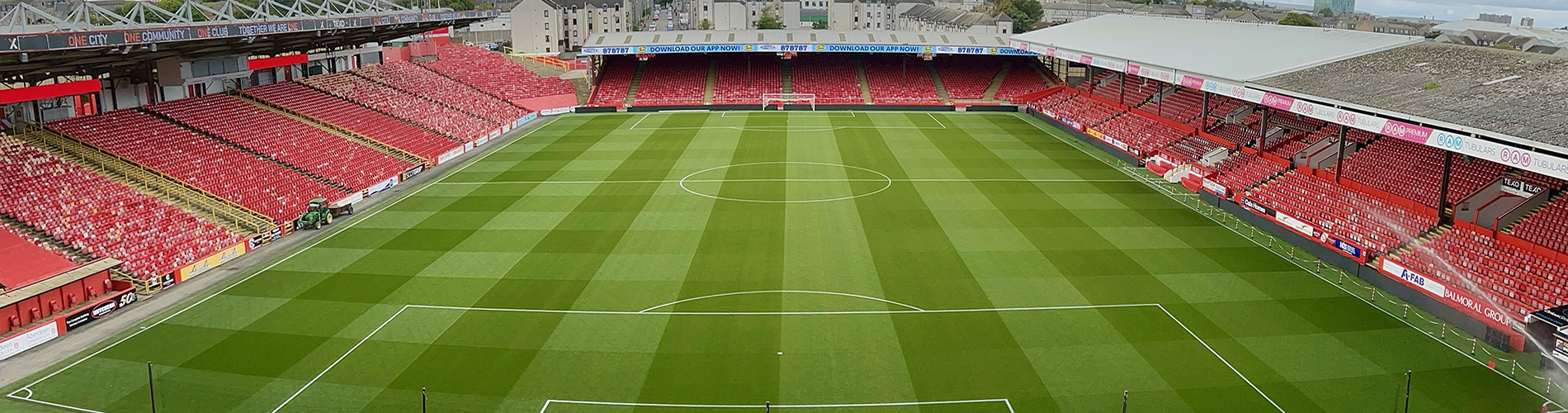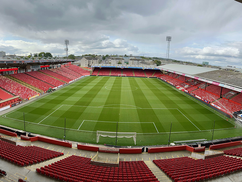 Growing grass quickly during renovations in Aberdeen isn’t easy – both sites are exposed to cold winds and Pittodrie is straight off the North Sea. Elite Sport has done well, giving strong rooting and a stable surface – Pittodrie doesn’t have the luxury of a hybrid pitch.