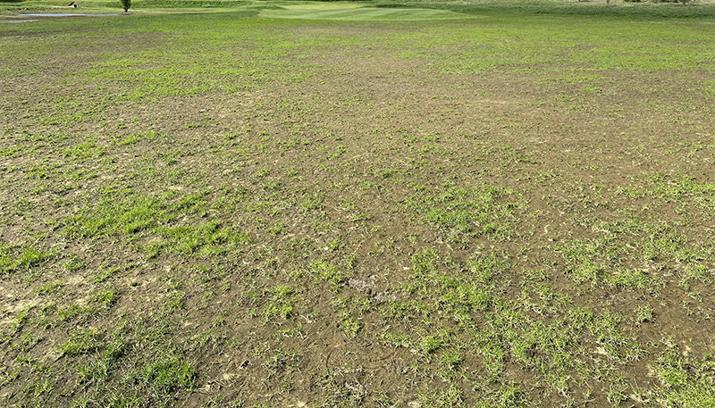 Picture above. A golf course fairway that was submerged in water for over 8 weeks through the winter.