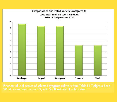 The graph below highlights the remarkable breeding achievements that have created an unrivalled portfolio of extremely fine-leafed cultivars for golf over the last decade. Bargold, and more recently Barsignum and Barolympic have all set new standards for the species.